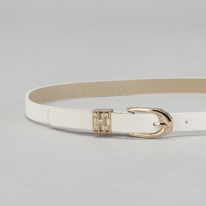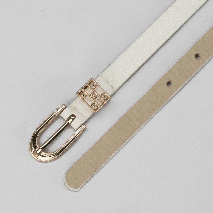 Ремень женский "Замочек", матовый, пряжка и хомут золото, ширина - 1см, белый