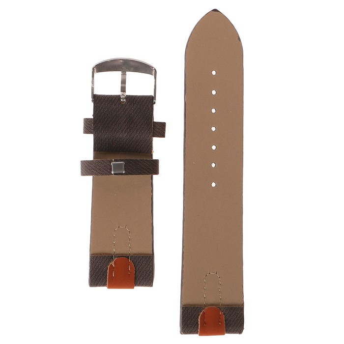 Ремешок для часов, кожзам, 24мм, болотный под джинсу с коричневыми вставками 22,5см
