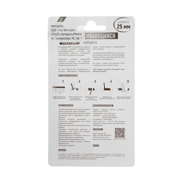 Ремонтная лента Junco TAPE 25 мм х 3м x 0.5 мм, самосклеивающаяся, силиконовая, желтая