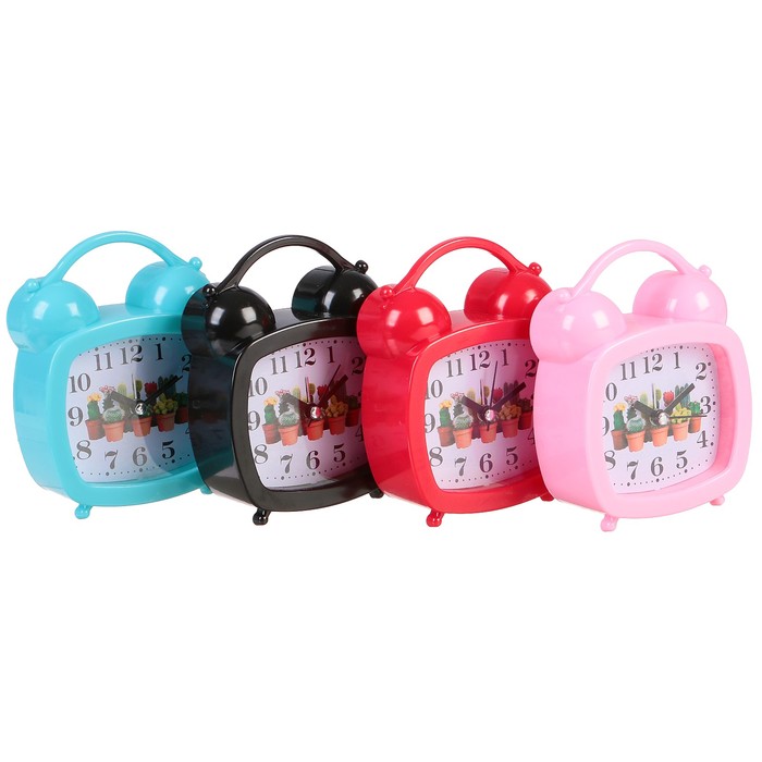 Ретро-часы, прямоугольник, на циферблате Кактусы, пластик, микс, 4,5*14см