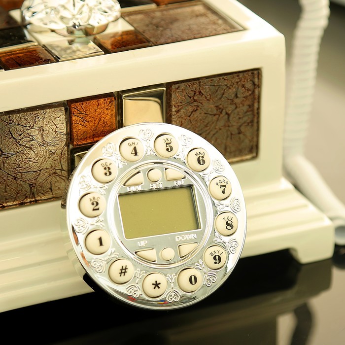 Мы предлагаем широкий ассортимент бытовой электроники. Ретро телефон «Брилиантовая мозаика», прямоугольный, белый, полистоун, 25х17х24 см — это полезный и актуальный прибор, который прослужит долго и сделает вашу жизнь проще.