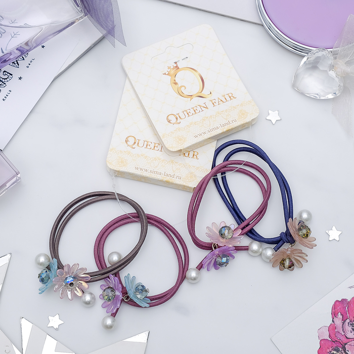Резинка для волос "Аделина" (цена за штуку) цветочки с бусинами