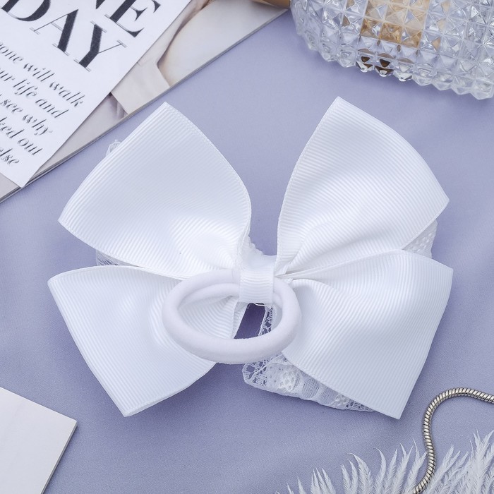 Резинка для волос бант "Школьница" 14 см, кружево и стразы, белый — отличный помощник в создании аккуратной и красивой укладки за считанные секунды. Сделайте образ ярким!