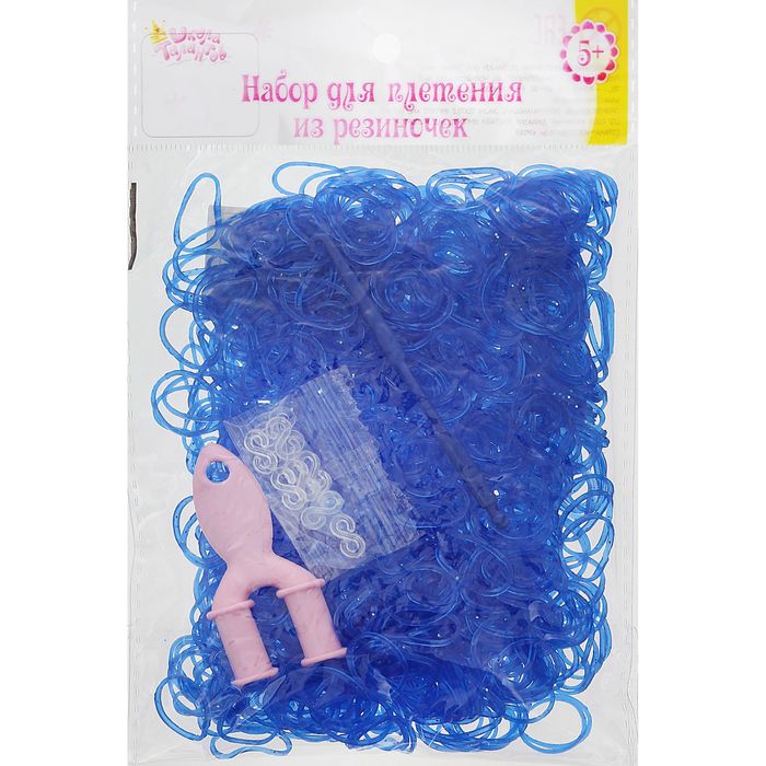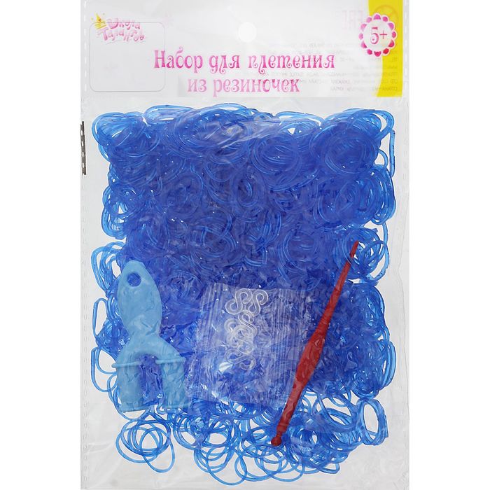 Резиночки для плетения голубые с блёстками 1000 шт., крючок, крепления, пяльцы