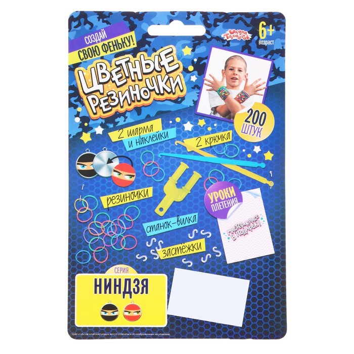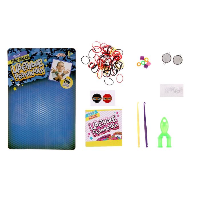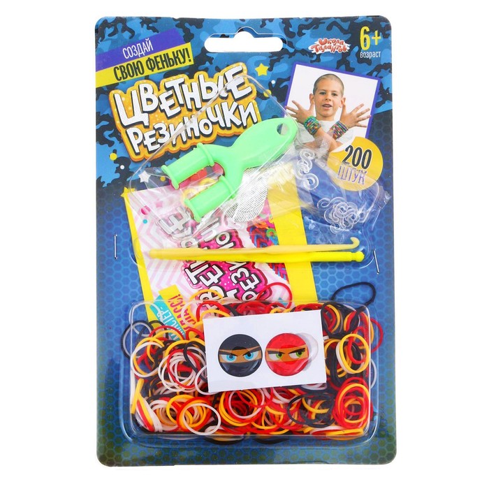 Резиночки для плетения "Ниндзя", набор 200 резиночек, 2 металлических шарма, бусины, наклейки, инструменты и мастер-класс — это новый взгляд на создание уникальных браслетов. Чтобы процесс плетения был интересен как для начинающих, так и для опытных модниц и модников, мы подготовили целую книжку с различными мастер-классами по созданию браслетов! Теперь не нужно покупать отдельные учебные пособия — достаточно подарить ребёнку набор «Цветные резиночки» и с удовольствием наблюдать за созданием браслетиков в разных техниках.