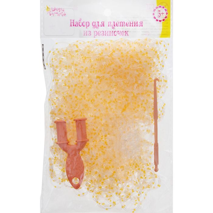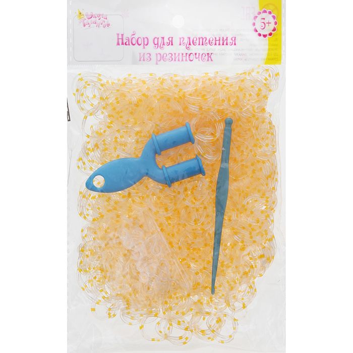 Резиночки для плетения прозрачно-жёлтые, набор 1000 шт., крючок, крепления, пяльцы