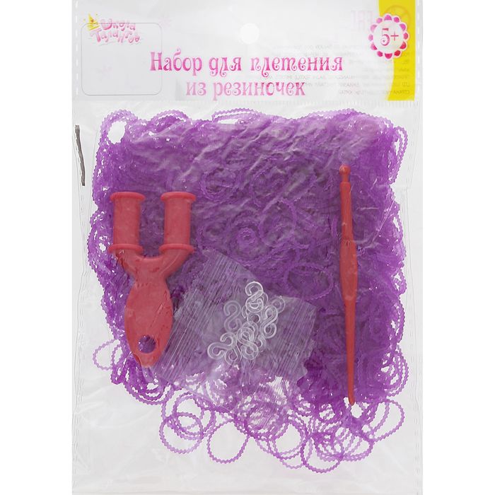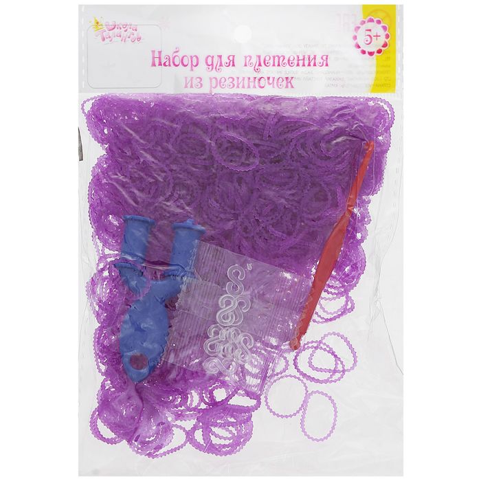 Резиночки для плетения ребристые фиолетовые, набор 1000 шт., крючок, крепления, пяльцы