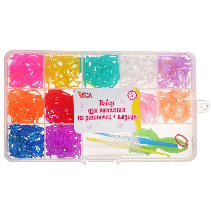 Резиночки для плетения ребристые, набор 12 цветов по 40 шт., пяльцы, 2 крючка, крепления