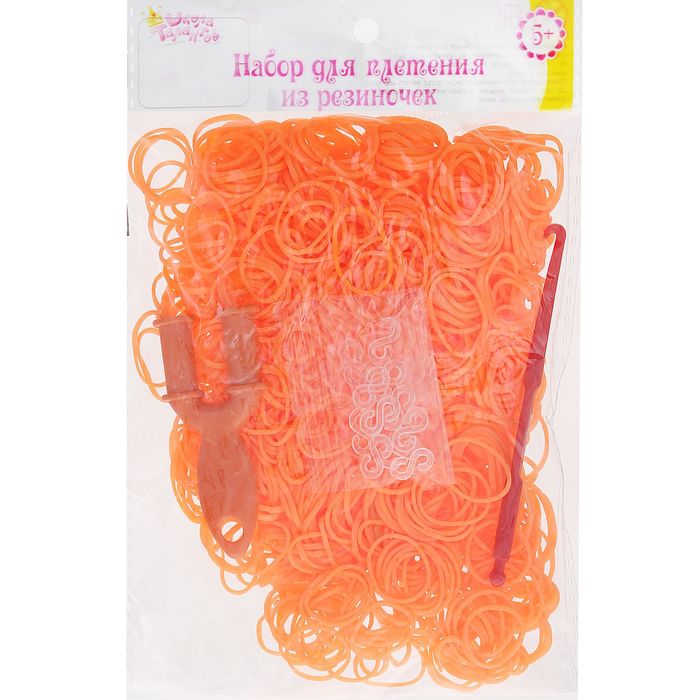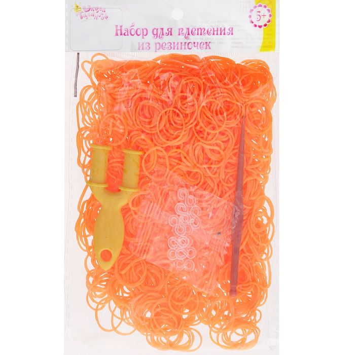 Резиночки для плетения ярко-оранжевые, набор 1000 шт., крючок, крепления, пяльцы