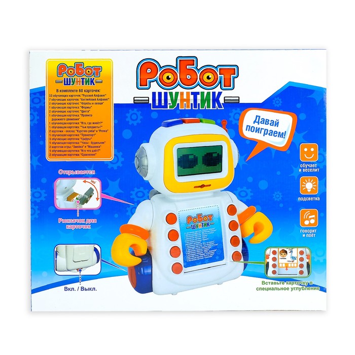 Робот интерактивный "Шутник", обучающие карточки, свет, звук