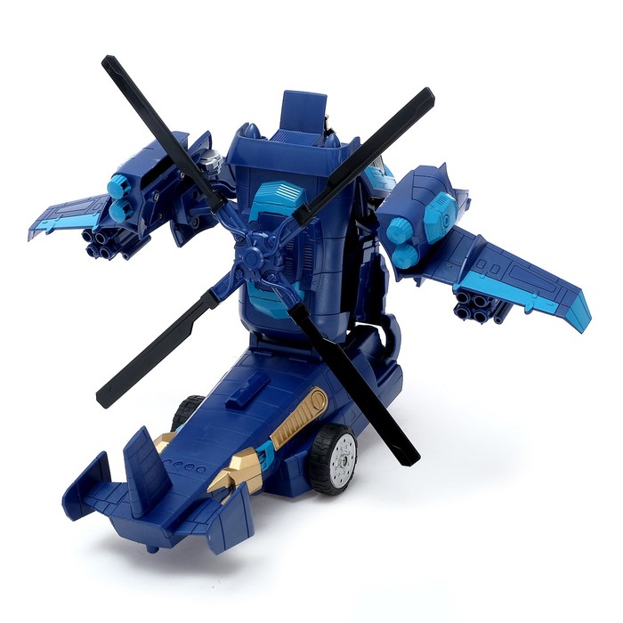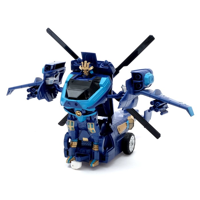 Манёвренный вертолёт оснащён интеллектуальной радиоуправляемой системой. Для того чтобы летательный аппарат превратился в робота, достаточно нажать кнопку на пульте. Модель имитирует звук трансформации, проигрывает встроенные композиции, поворачивается вокруг оси и движется в любом направлении.