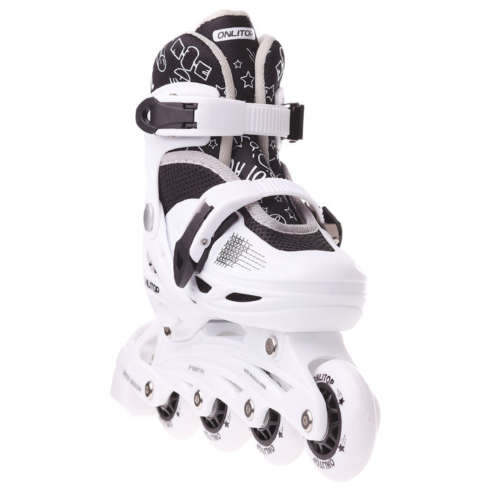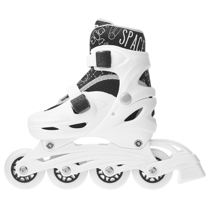 Роликовые коньки раздвижные, колеса PVC 64 мм, пластиковая рама, white/black р.34-37