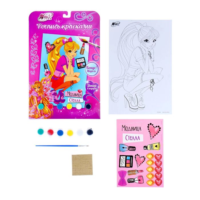 Роспись "Модница", феи ВИНКС: Стелла, с красками 6 шт по 3мл+ кисть+доп элементы