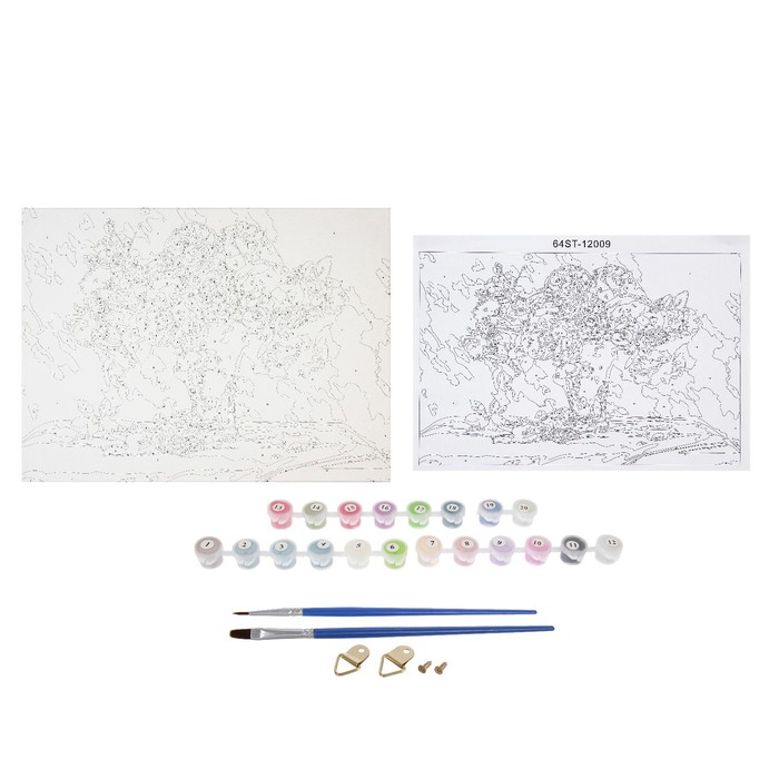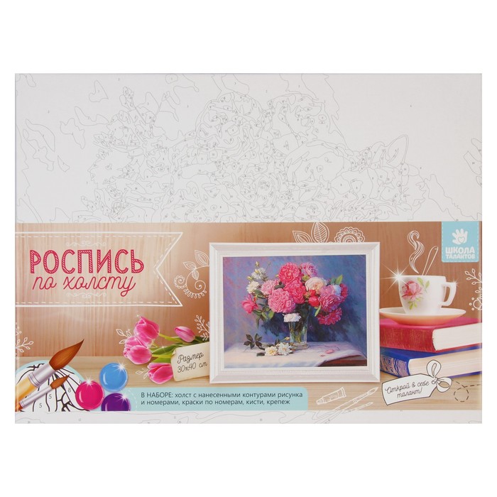 Роспись по холсту "Букет свежесть" по номерам с красками по 3 мл+ кисти+инстр+крепеж 30*40
