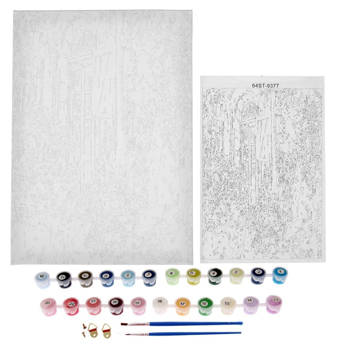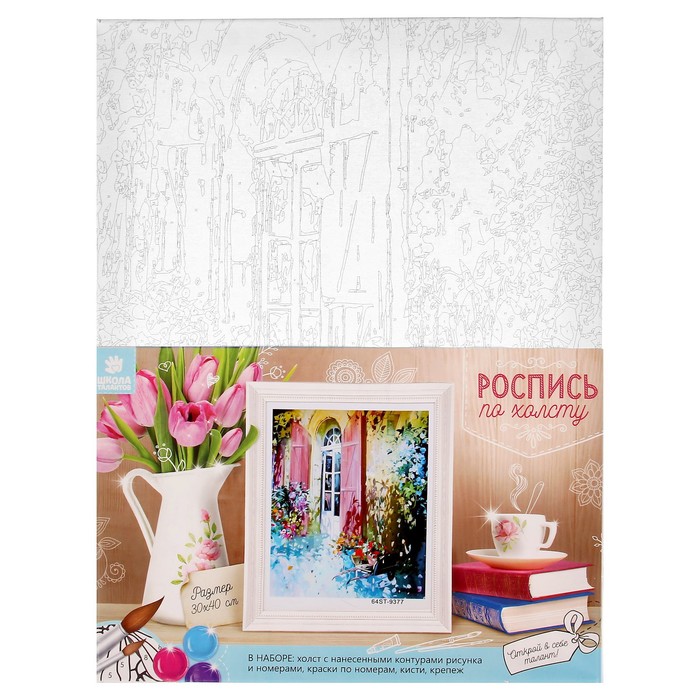 Роспись по холсту "Цветы у окна" по номерам с красками по3 мл+ кисти+инстр-я+крепеж 30*40