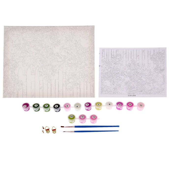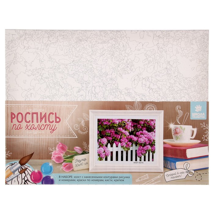 Роспись по холсту "Цветы в клумбе" по номерам с красками по3 мл+ кисти+инстр-я+крепеж 30*40