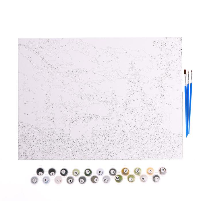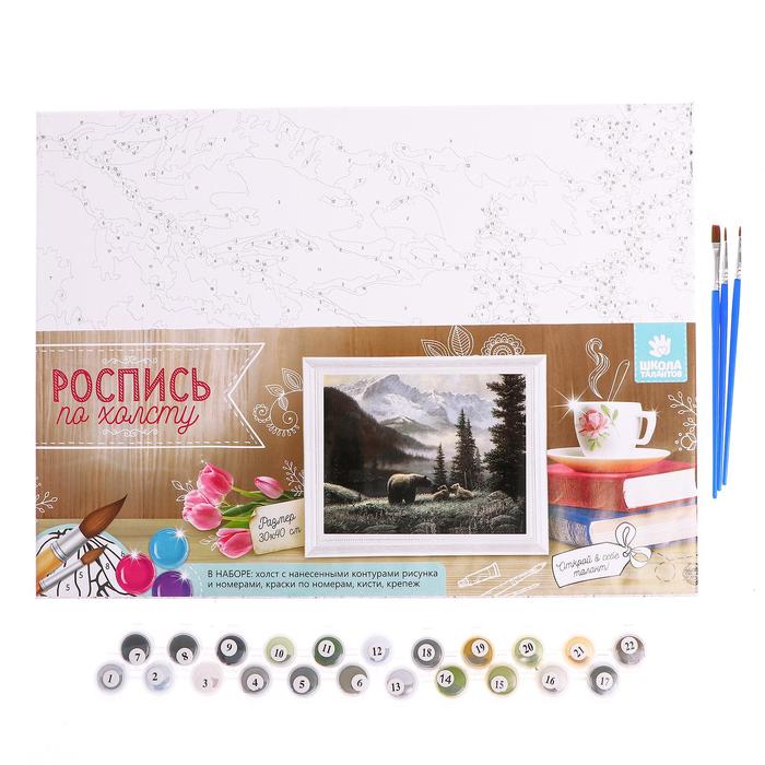 Роспись по холсту "Медведи на поляне"по номерам с красками по3 мл+ кисти+инстр+крепеж 30*40