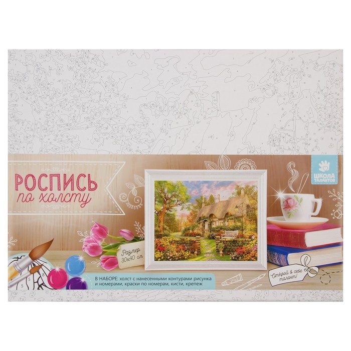 Роспись по холсту "Прелестный дом" по номерам с красками по 3 мл+ кисти+инстр+крепеж 30*40