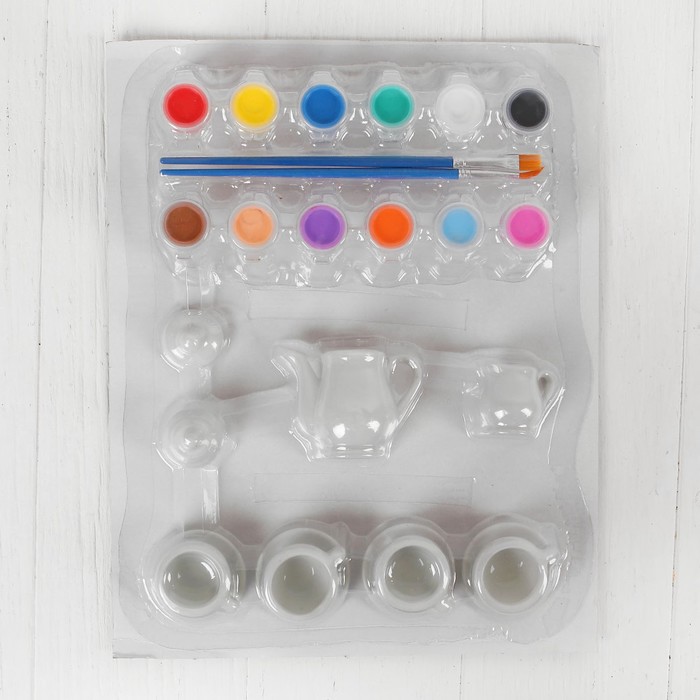 Роспись по керамике "Чайный сервиз", краски 12 цветов по 3 гр, кисти