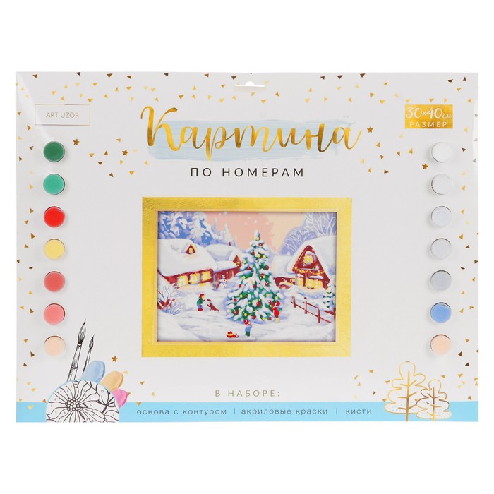 Роспись по номерам без подрамника "Елка" с красками 14шт по3мл+ кисти 30*40 см