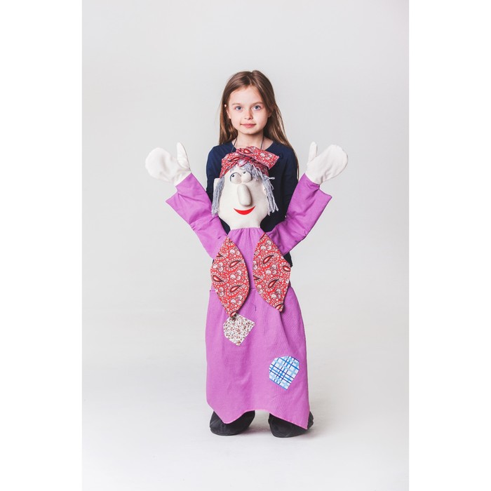 Ростовая кукла будет способствовать развитию творческих способностей малыша и поможет избавиться от стеснительности. Ведь в процессе постановок дети учатся общаться и выражать свои чувства, совершенствуют воображение, речь и память. Взрослые также с успехом могут принять участие в спектаклях и подыграть малышу. Для этого накиньте тесёмку на шею и наденьте варежки, ножки куклы при этом останутся висеть.