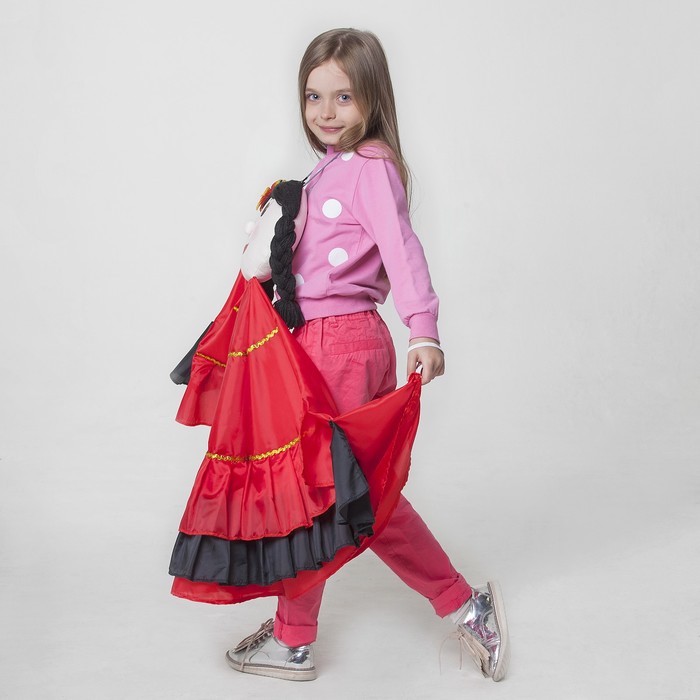 Ростовая кукла "Цыганка", цвета МИКС — это увлекательная игрушка, которая позволит с пользой провести время и подарит много радостных минут детям и взрослым. Она похожа на карнавальный костюм, только надевается гораздо быстрее. Ножки необходимо обуть в сапожки, специальный шнурок, длина которого регулируется, накинуть на шею, а края платья взять в руки. За несколько секунд ребёнок превратится в любимого сказочного персонажа!