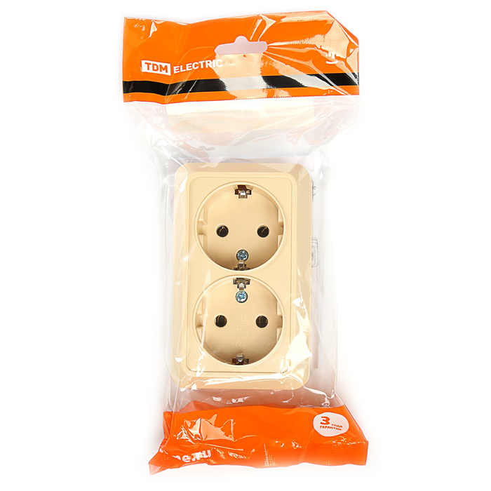 Розетка двойная 2П+3 открытой установки IP20 16А, сл. кость "Ладога" TDM