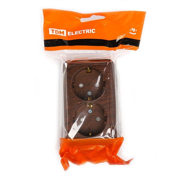 Розетка двойная 2П+З открытой установки с з/ш IP20 16А, бук "Ладога" TDM