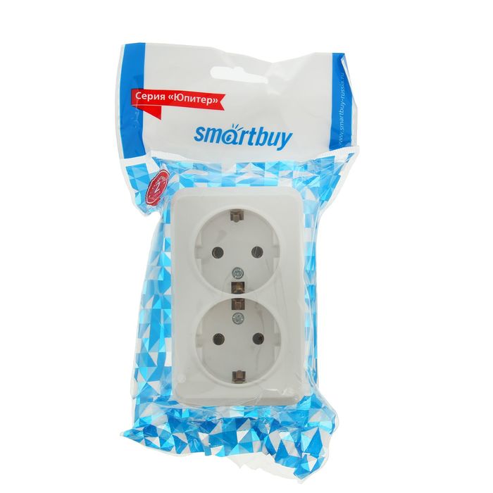 Розетка "Юпитер", 16 А, двухместная, наружная, с з/к, белая, SBE-03w-16-S2-Z