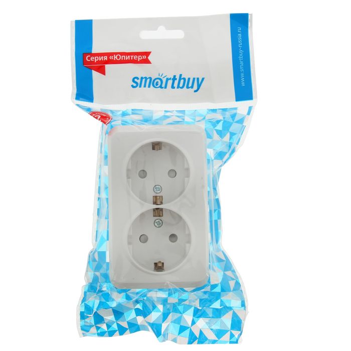Розетка "Юпитер", 16 А, двухместная, наружная, с з/к, с шторками, белая, SBE-03w-16-S2-1Z
