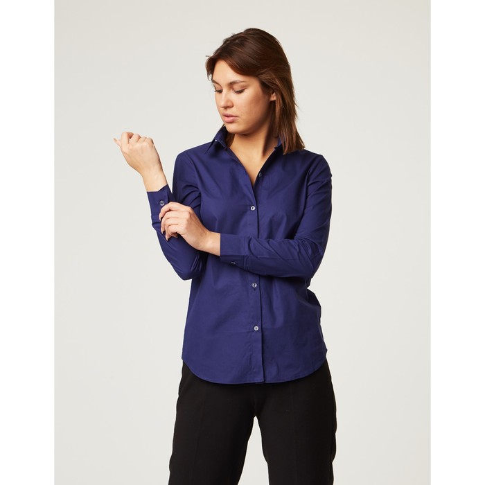 Рубашка женская прямая, размер 52, синий, хлопок 100%