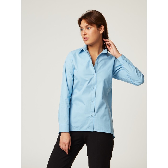 Рубашка женская трапеция, размер 44-46, голубой, хлопок 100%