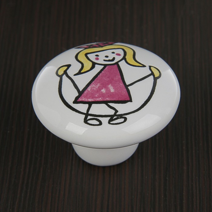 Ручка-кнопка Ceramics KID 047, керамическая, белая с принтом
