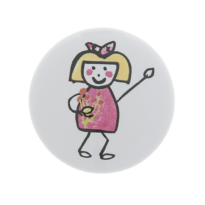 Ручка-кнопка Ceramics KID 048, керамическая, белая с принтом