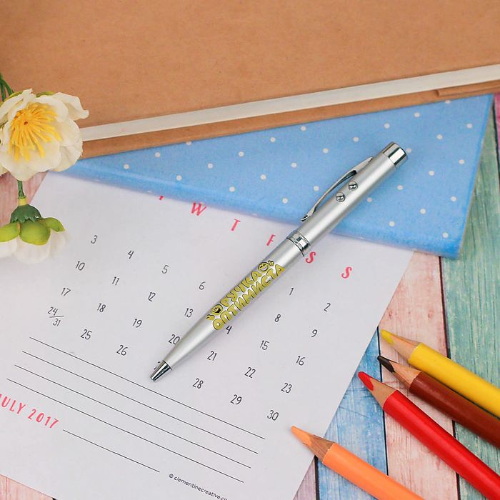 Шариковая ручка — то, чем люди пользуются почти каждый день дома и на работе. Мы улучшили этот обычный на первый взгляд предмет, и теперь это не просто полезный аксессуар, а оригинальный сувенир. Используйте его в качестве лазерной указки или фонарика!