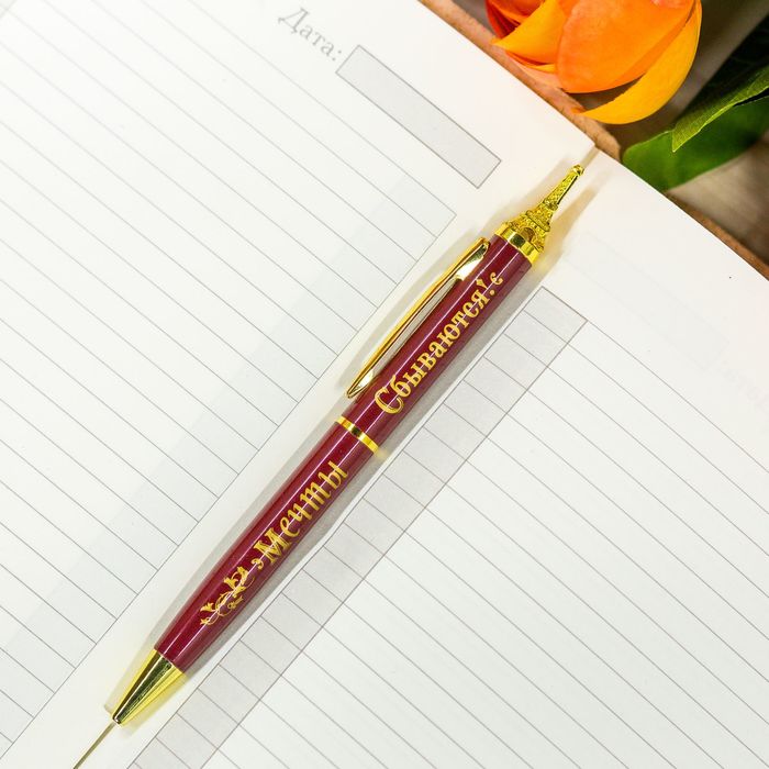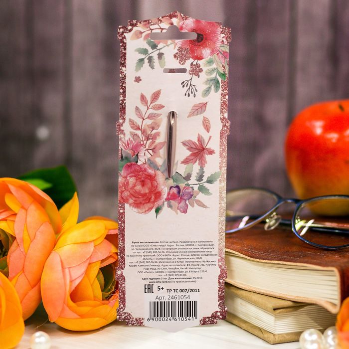 Подарочная металлическая ручка отличается оригинальным оформлением. Сувенир представлен на авторской подложке-открытке с поздравлением.
