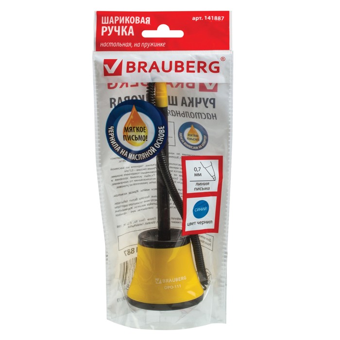 Ручка на подставке N1, масляная основа, на пружинке, корпус черно-желтый, чернила синие