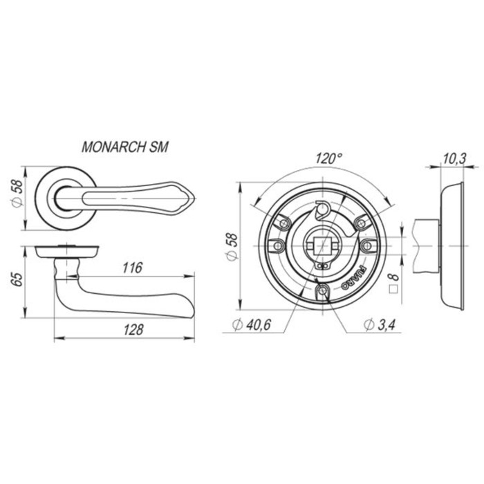 Ручка раздельная Fuaro MONARCH SM AS-3, цвет античное серебро
