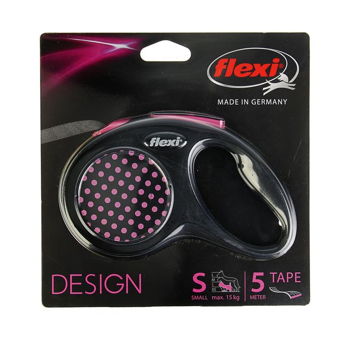 Рулетка Flexi Design S (до 15 кг) 5 м лента, черная/розовый горошек — оригинальная вещица для вашего питомца. Ежедневный уход за вашим любимцем и дрессировка превратятся в удовольствие с нашими товарами. Порадуйте себя или своих знакомых забавной новинкой или подарите её человеку, который давно планировал завести четвероногого друга.