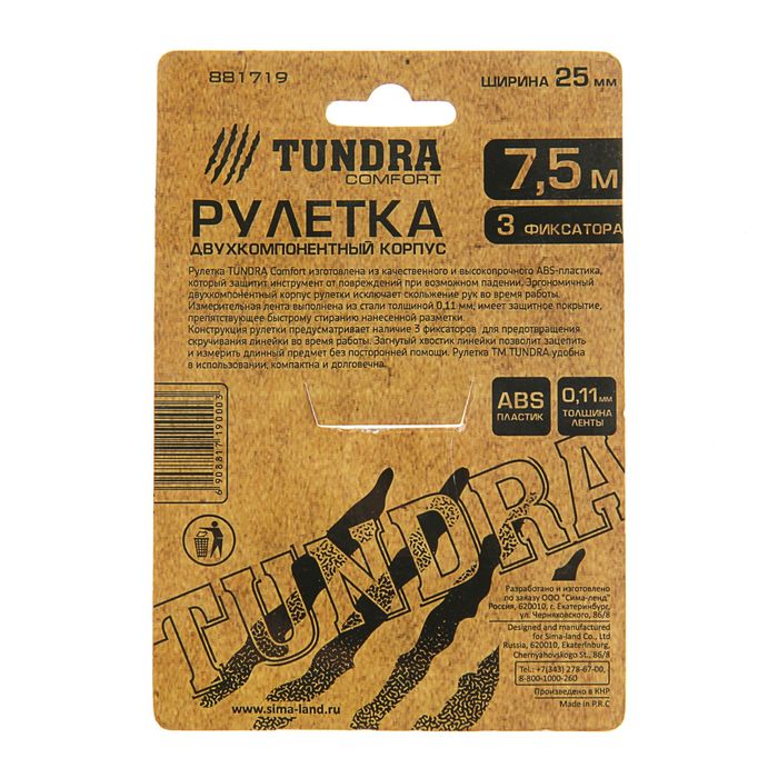 Рулетка Tundra Comfort подходит как для бытового использования, так и для профессиональной деятельности. Пластмассовый корпус из прочного ABS-пластика с прорезиненными элементами придаёт ещё больший комфорт в использовании. Кроме того, прорезиненный корпус смягчает силу удара при случайном падении, продлевая тем самым срок службы инструмента. Рулетка удобно лежит в руке и не выскальзывает.