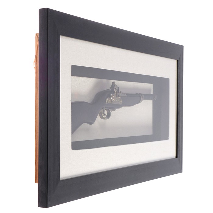 Ружьё в раме, рама серебристая широкая, 97х48 см