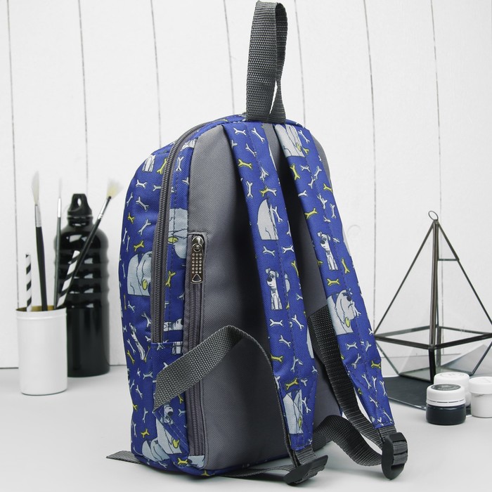 Рюкзак детский "Бульдог", отдел на молнии, 2 наружных кармана, цвет синий