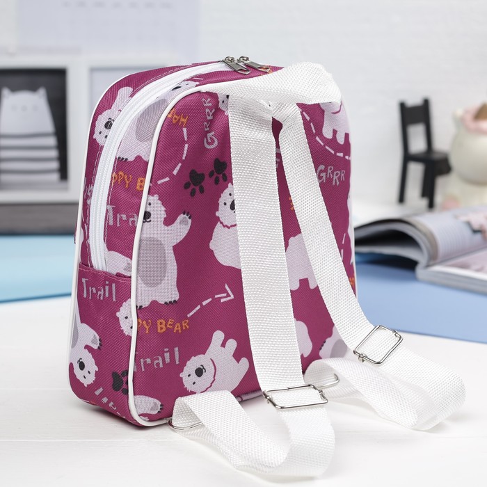 Рюкзак детский на молнии "Медведи на розовом", 1 отдел, наружный карман, цвет розовый/белый