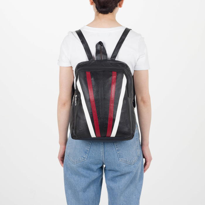 Рюкзак молодёжный, 2 отдела на молниях, цвет чёрный/красный/белый
