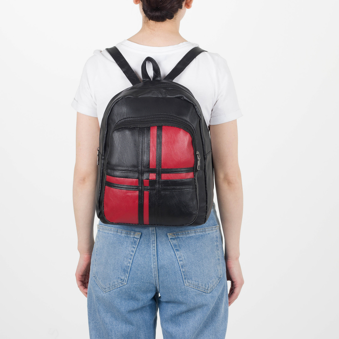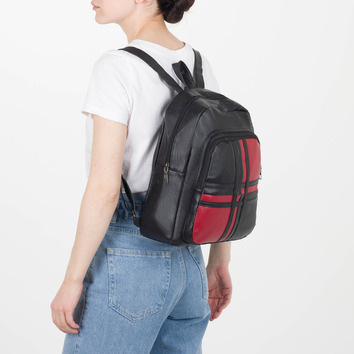 Рюкзак молодёжный, 2 отдела на молниях, цвет чёрный/красный