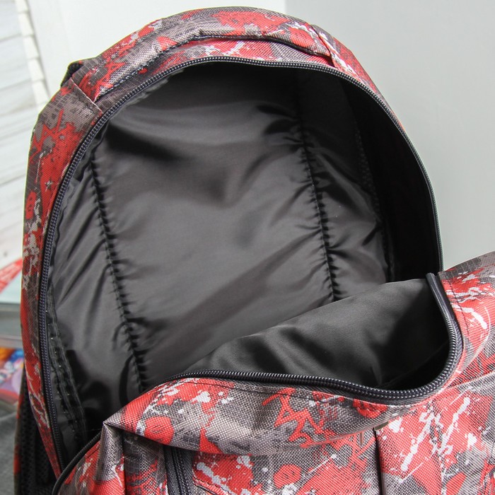 Рюкзак молодёжный "Абстракция", 1 отдел на молнии, 3 наружных кармана, цвет серый/красный