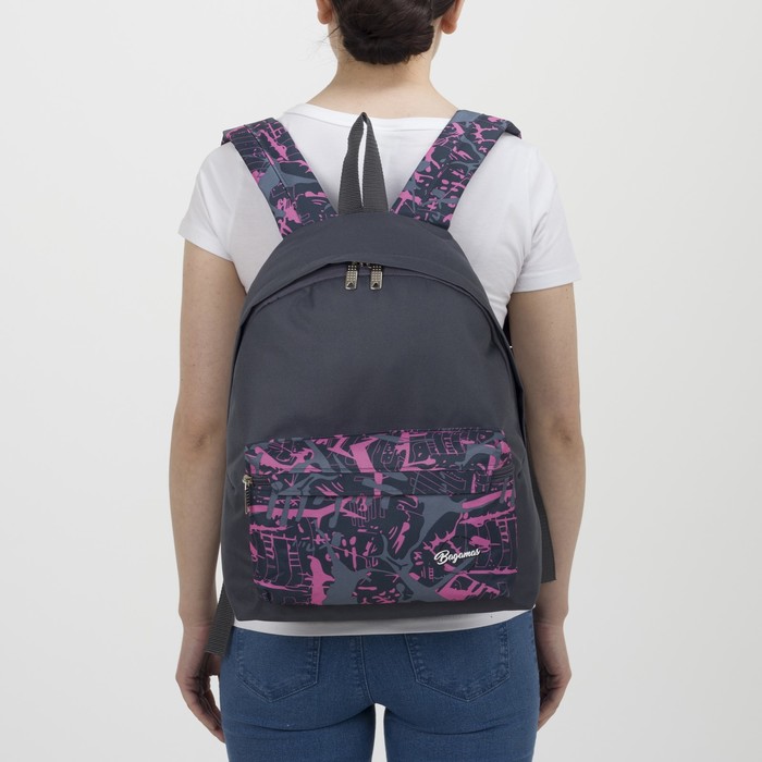 Рюкзак молодёжный "Абстракция", отдел на молнии, наружный карман, цвет серый/розовый