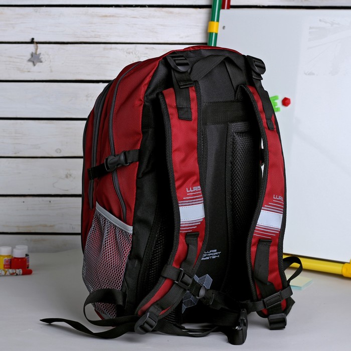 Рюкзак молодёжный на молнии, 3 отдела, 1 наружный карман, серый/красный