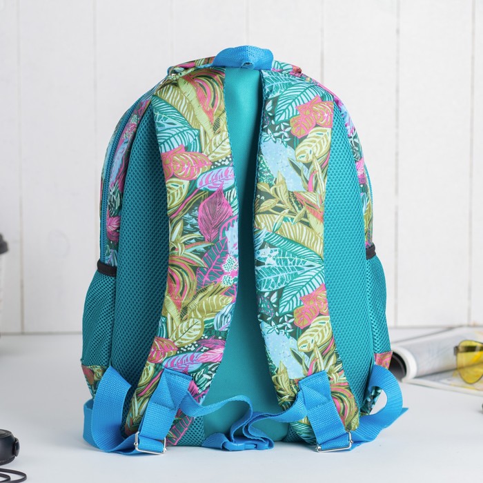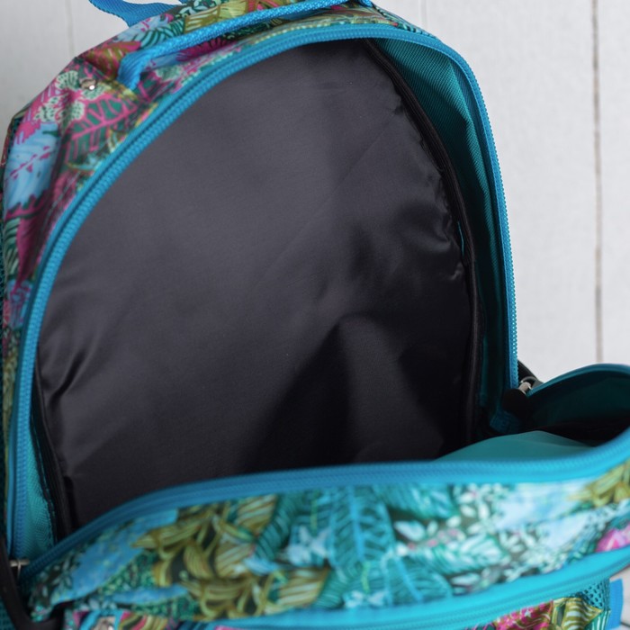 Рюкзак молодёжный на молнии "Бабочки", 2 отдела, 1 наружный и 2 боковых кармана, эргономичная спинка, цвет бирюзовый