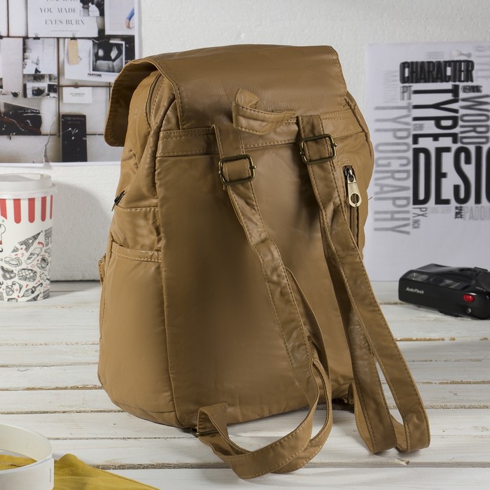 Рюкзак молодёжный на молнии "Элиза", 1 отдел, 2 наружных и 2 боковых кармана, бежевый
